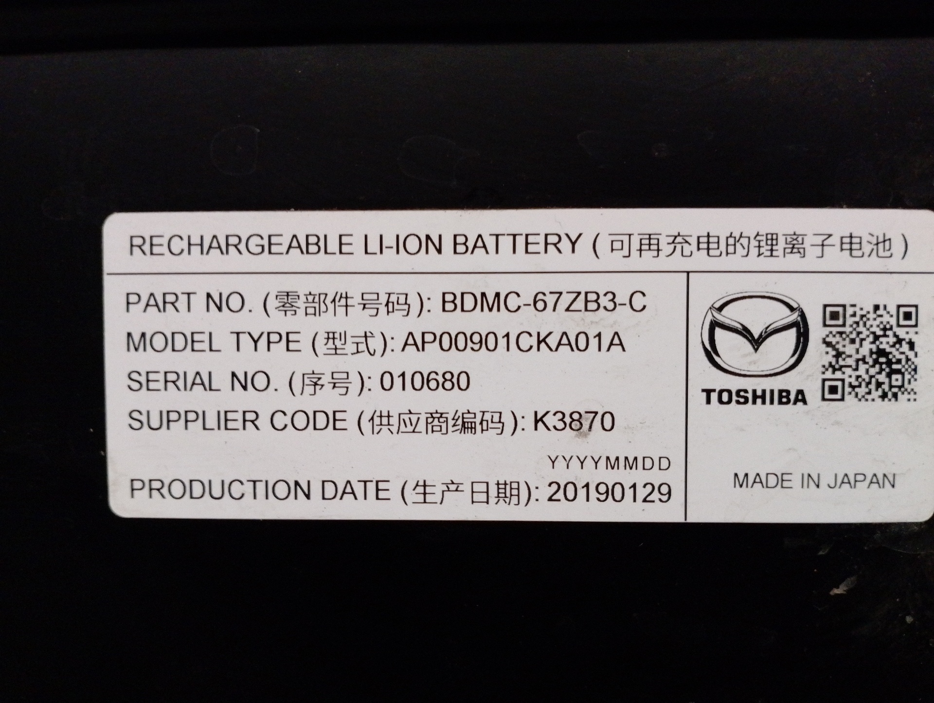 BATERIA MAZDA 3 SEDÁN (BP) BDMC67ZB3C Referência TELEPEÇAS: 12722778 10 Nov 2023 |