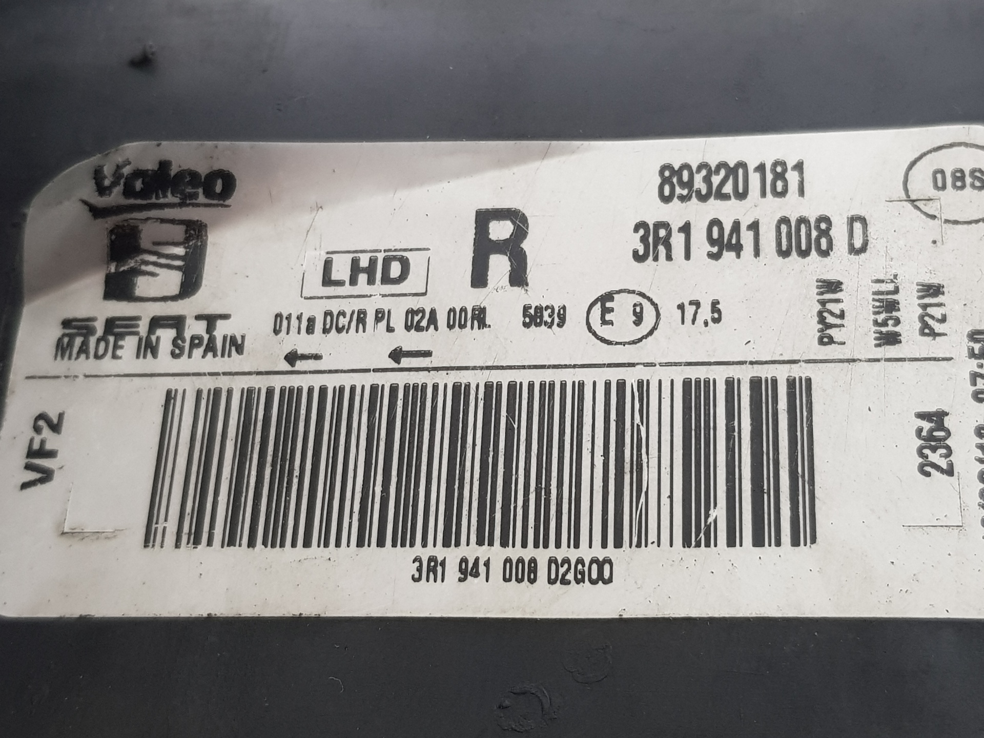 FARO DERECHO SEAT EXEO ST 3R1941008D Referência TELEPEÇAS: 11123063 02 Jan 2024 |