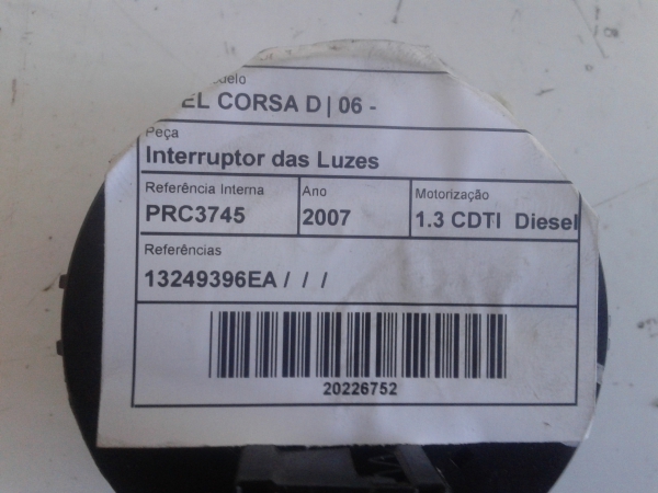 | Interruptor das Luzes OPEL CORSA D (S07) | 06 - 14 13310331 Referência TELEPEÇAS: 1202785 28 Set 2024 | Peça automóvel usada |