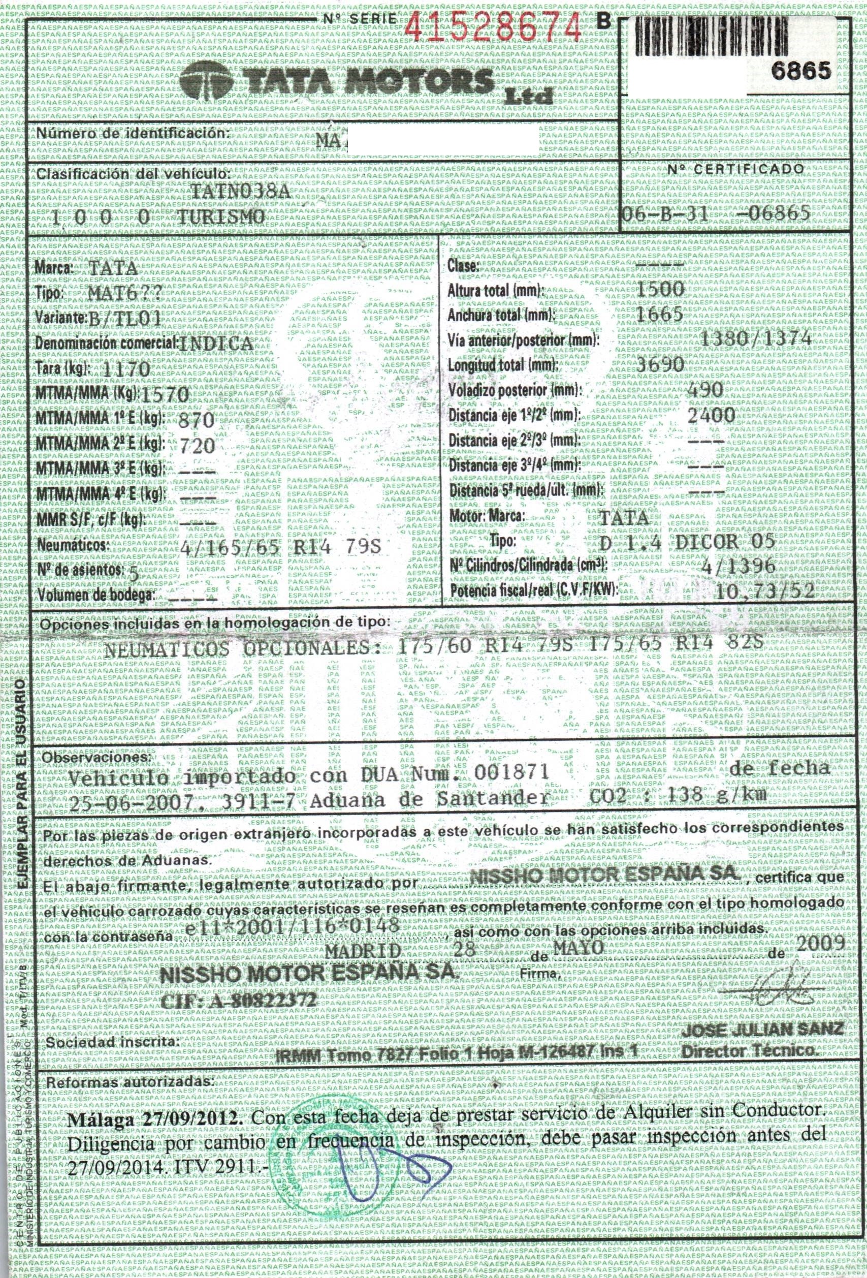 | Motorização | 1.4 ( 52 KW) |