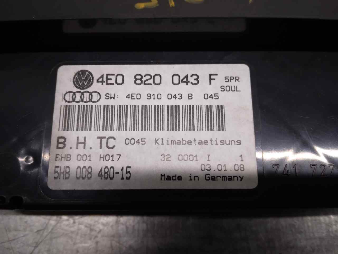 MANDO CLIMATIZADOR AUDI A8 (4E2) 4E0820043F Referência TELEPEÇAS: 12657596 23 Dez 2022 |