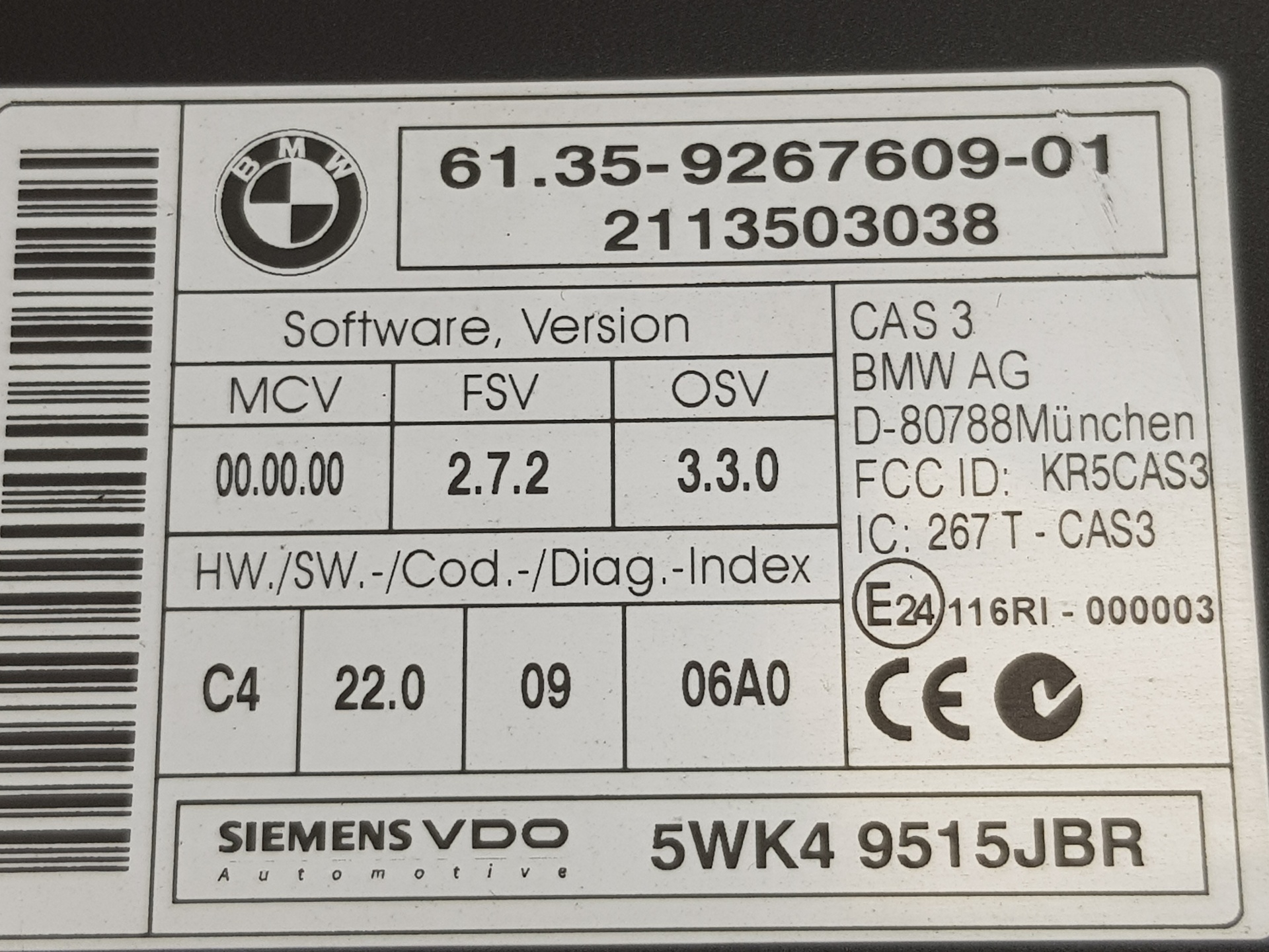 | Observações | 61359267609 9267609 2113503038 5WK49515JBR |
