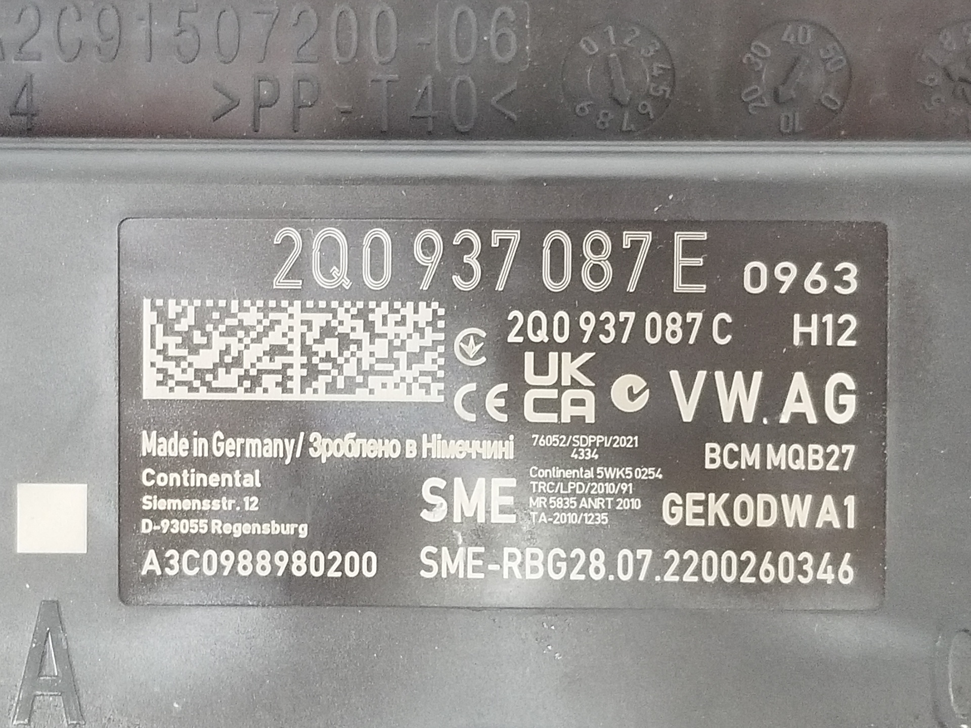 | Referências | 2Q0937087E |