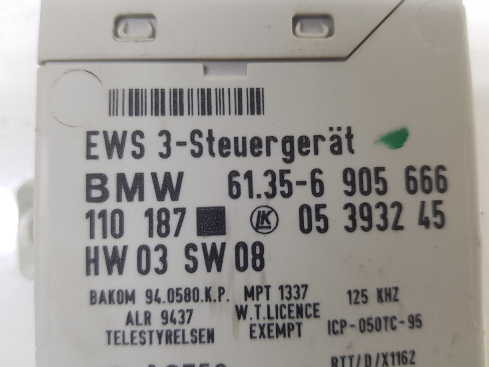 | Observações | Unidad de control EWS III 61356905666 6905666 61356905667 61359145097 61358374957 61354100187 1110187 05393245 HW03SW08 940580KP |