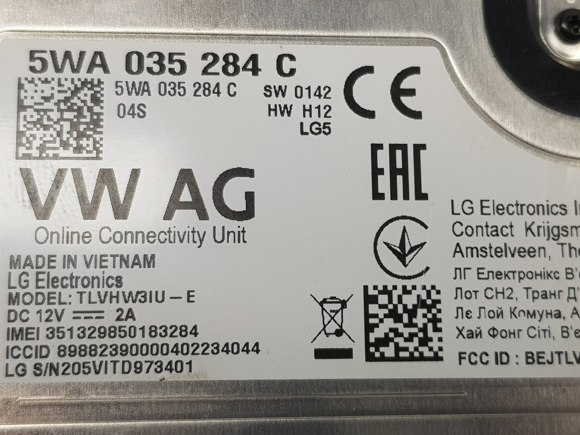 Modulo eletrónico CUPRA LEON 5WA035284C Referência TELEPEÇAS: 10937957 15 Nov 2023 |