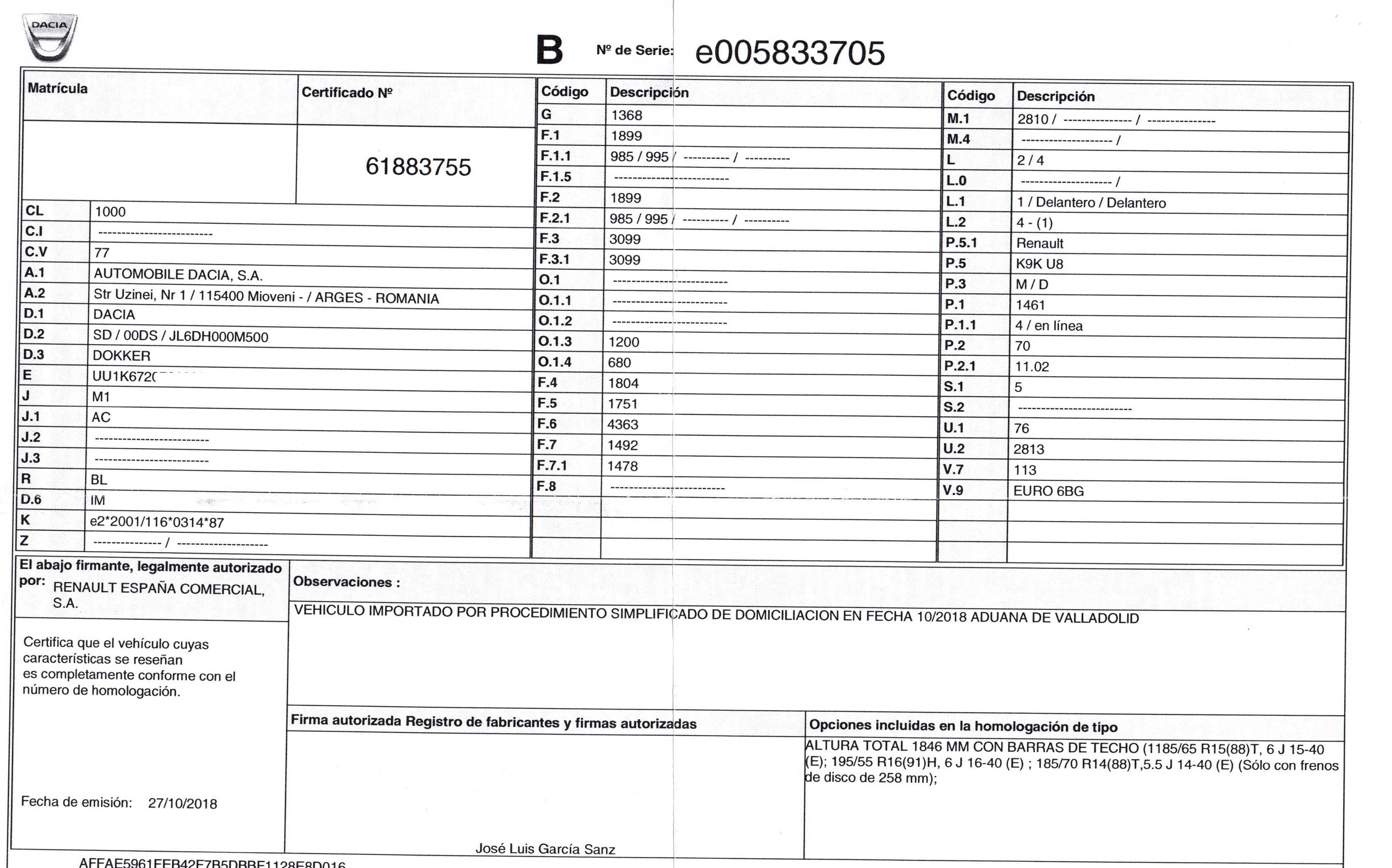 | Código de motor | K9KU872 |