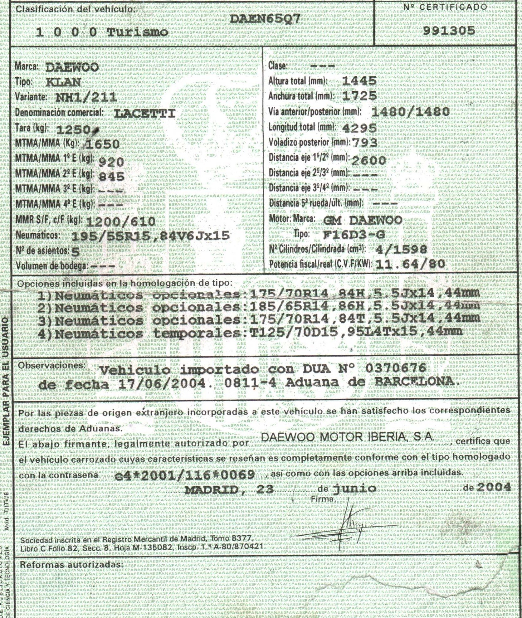 | VIN | KLANF48614K991305 |