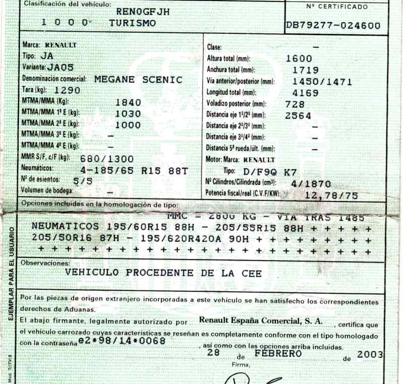 | Código de motor | F9Q K7 |